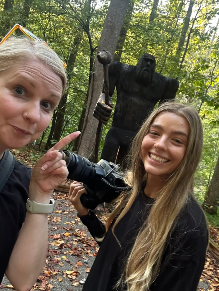 And yet, no matter how many apps I check, nature always has its own plans. I’ve trekked to sunrise locations only to find them completely smothered in dense fog. I’ve prepped talent in full snow gear only to have flakes falling so hard we couldn’t see them standing two feet in front of us. And don’t even get me started on chasing “peak fall color.” I’ve chased it harder than a Bigfoot hunter for years (ironically, I shot a Bigfoot statue on a trail in Clay County this year).